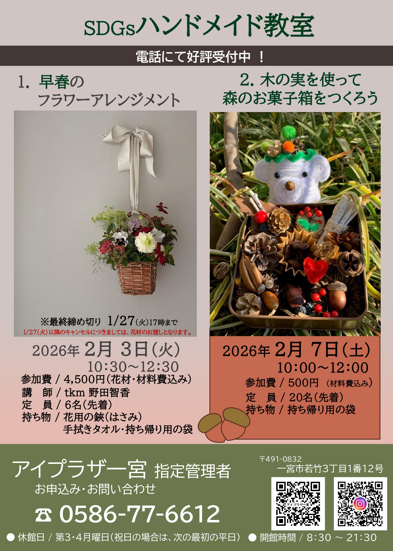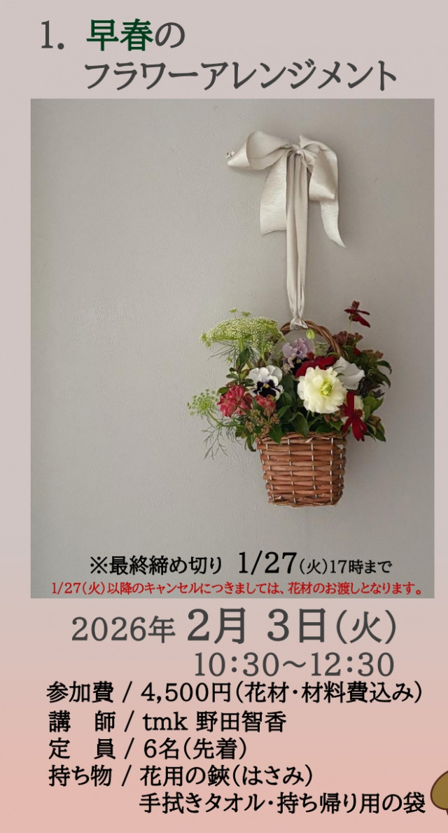 - SDGsハンドメイド教室 早春のフラワーアレンジメント ~バスケットアレンジのワークショップ~
