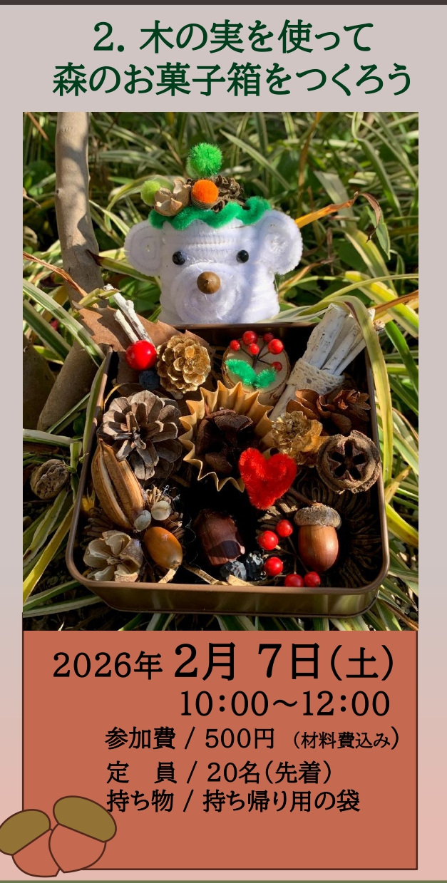 - SDGsハンドメイド教室 木の実を使って森のお菓子箱をつくろう