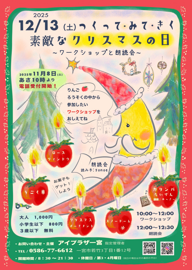 お知らせ 自主事業「つくって・みて・きく 素敵なクリスマスの日」情報のアップをしました 2025年11月13日 11月1日 (土) 午前9時 小ホール・諸室 調整会のお知らせ 2025年10月29日 自主事業「はじめての太極拳 2」満員御礼の情報をアップしました。 2025年10月10日 自主事業「楽しく歌おう懐メロ俱楽部」の情報をアップしました。 2025年09月28日 自主事業「柔軟ストレッチ」の情報をアップしました。 2025年09月23日 一覧はこちら